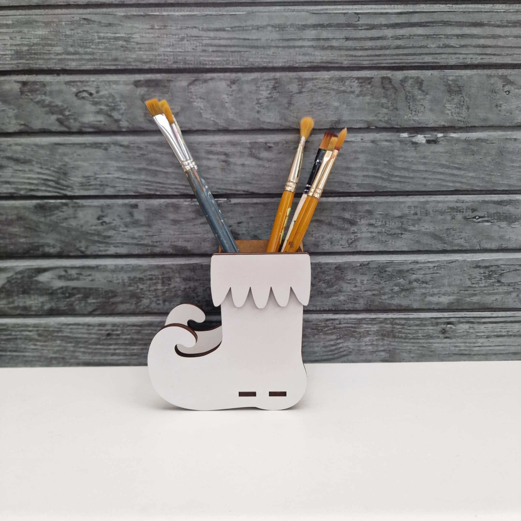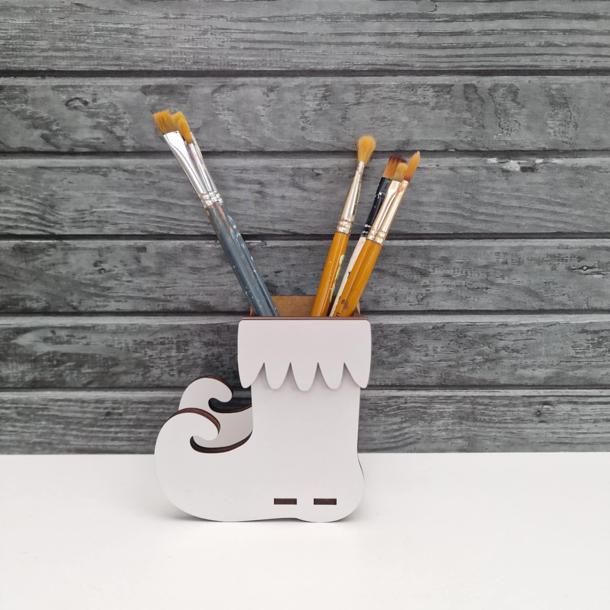 10cm tall boot cut from white MDF suitable for subliamtion. The svg is available on your account after purchase. White mdf comes with a protective cover on which needs to be removed before use