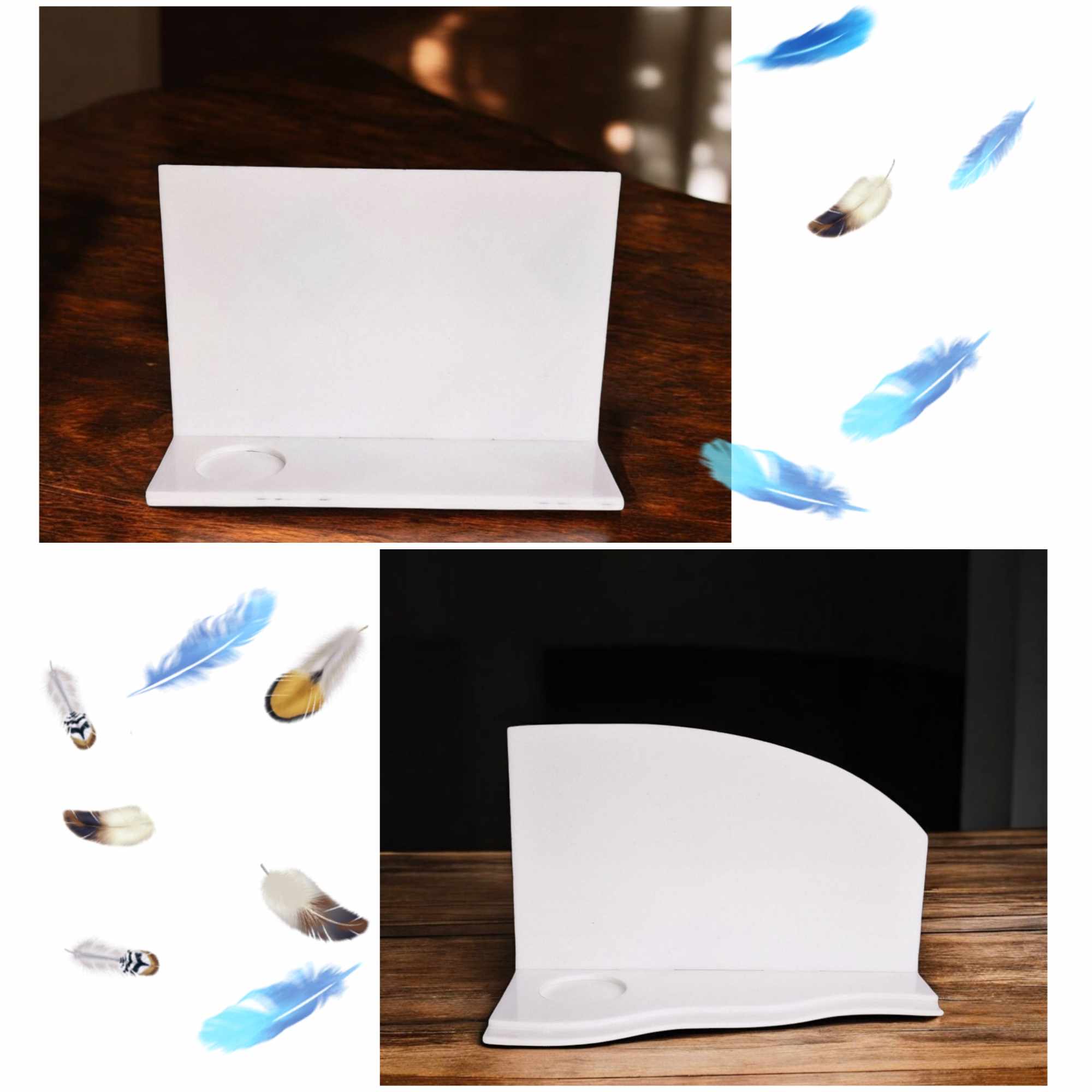 The white acrylic is suitable for subliamtion and vinyl designs. The bottom as well as the backboard is available in 2 styles as shown, you can mix and match them depending on how you want your look.