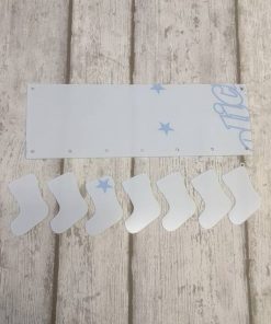 Plaques for 3 to 5 stockings are approx is 20 x 8 cm. The plaques for the 6 and 7 stocking option are approx 30 x 10cm