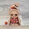 3mm mdf back , 18mm mdf single core OR 2 x 18mm mdf double core, 2mm clear acrylic and 3mm mdf front. This freestands. There is a 6cm wide hole at the top to drop chocolates in and tip it upside down to get them out again. These are not glued, you do that yourself after painting. Chocolates not included.