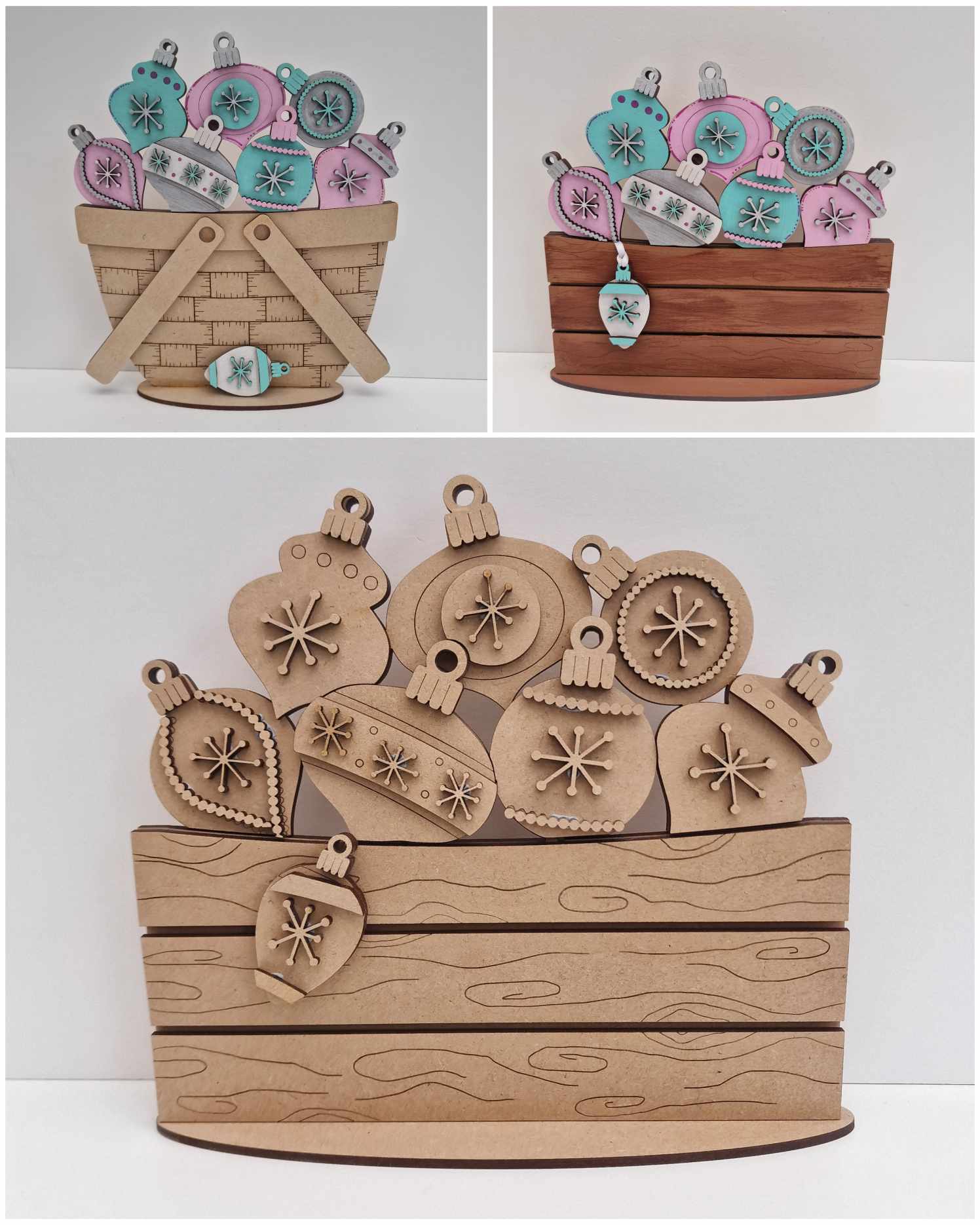 The interchangeable parts then need to be glued together after painting and they then sit inside the crate as shown. You can buy just the insert if you already have the crate/basket. Perfect for taking to craft fairs as you can take one crate with multiple inserts. Not painted, the finished photo is for inspiration only.