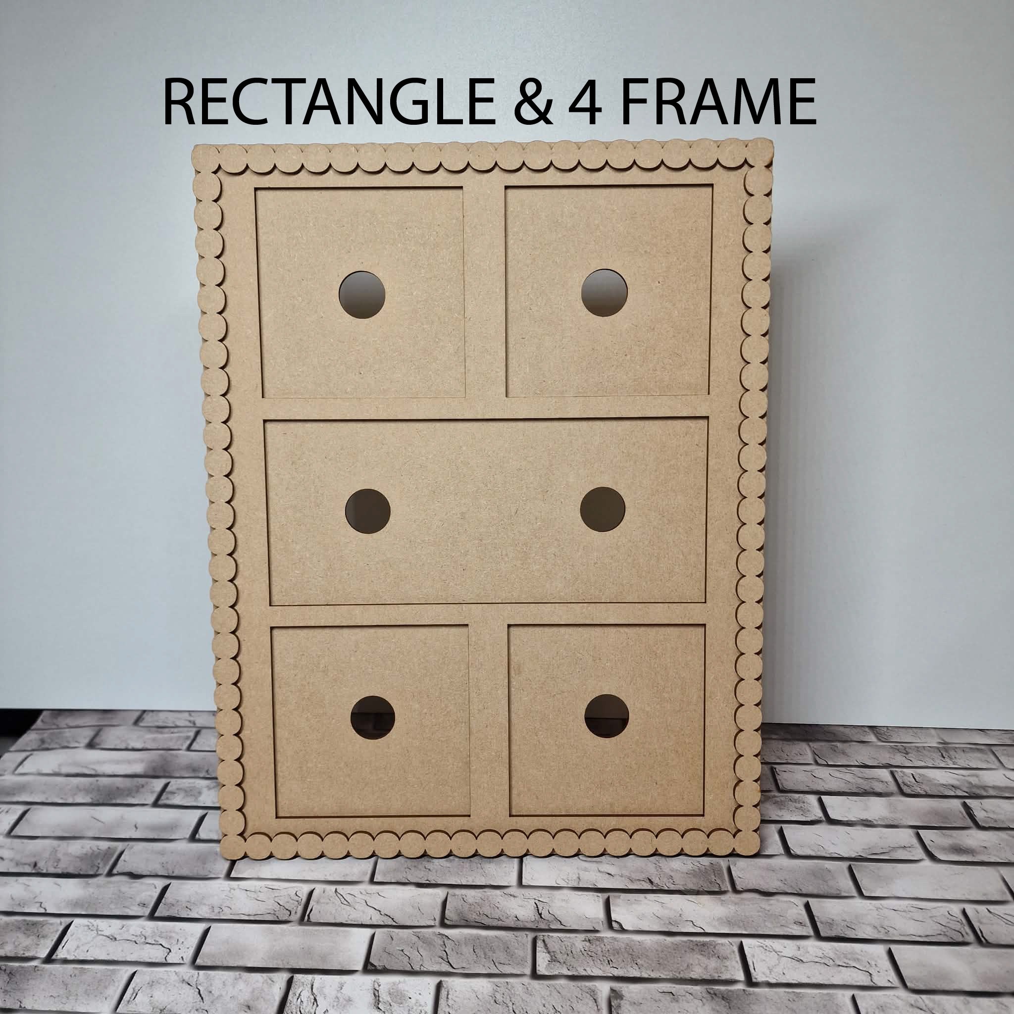 Each square insert comes with a stand that slots on the back so that it freestands. the double and triple can be used vertical or horizontal. Each frame has a flip stand on the back for it to freestand.The rectangle frames come with the rectangle insert as standard. Does not come painted or glued.