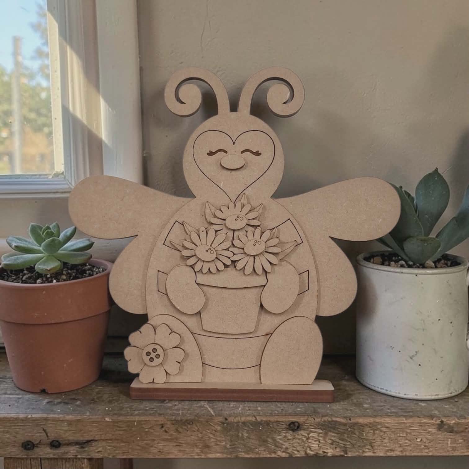 Cut from 3mm MDF with stand and is 18cm tall. Needs to be glued after painting, not supplied painted.