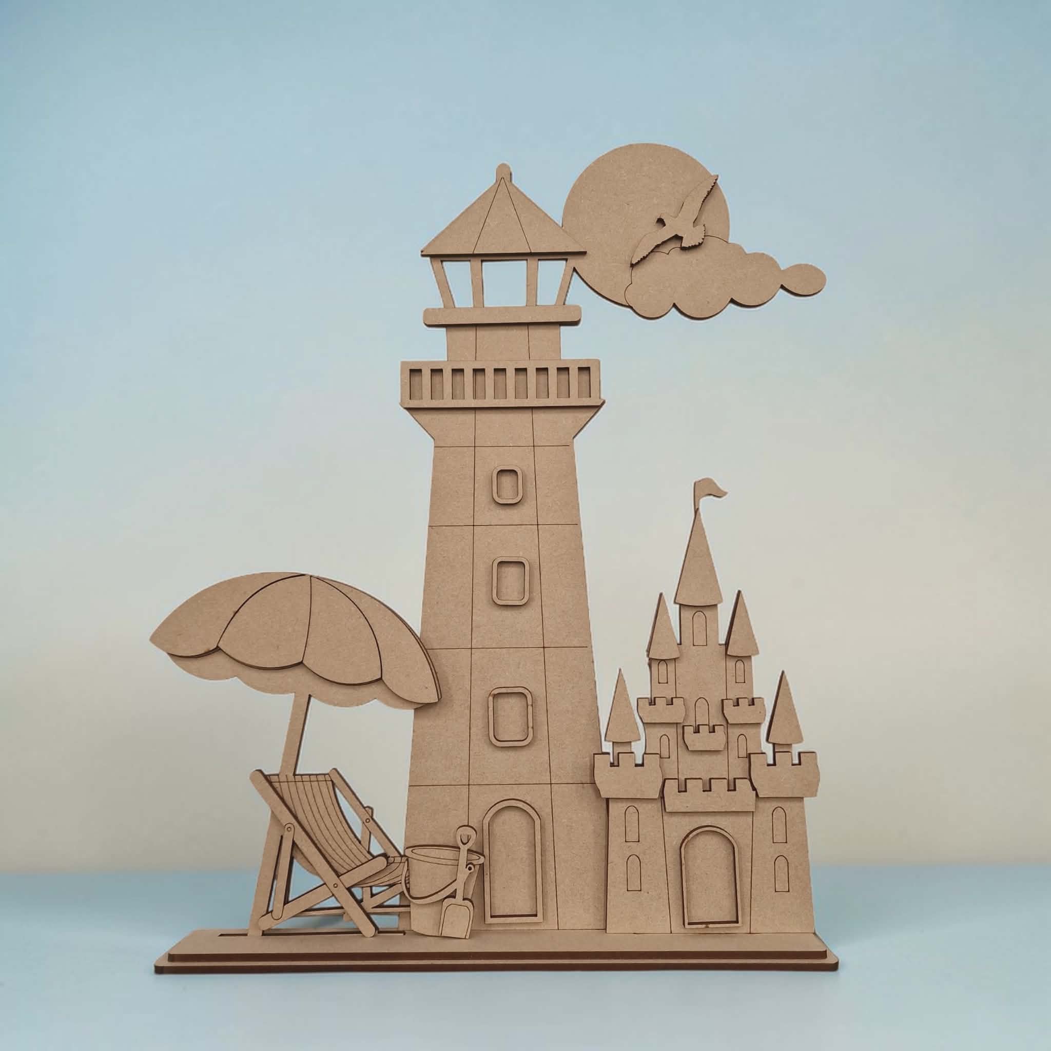 Lighthouse Chair and Sandcastle