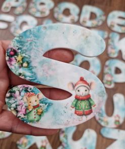 white acrylic bauble 9cm tall. Each one printed with the design as shown. Mixed packs can be various lettes, please write your choice in the notes box or we will send random letters. Some letters have 2 hanging holes so that they hang straight. Space on each letter if you decide to add a vinyl name. We do not persoanlise these, they are sold as seen. Waterproof.