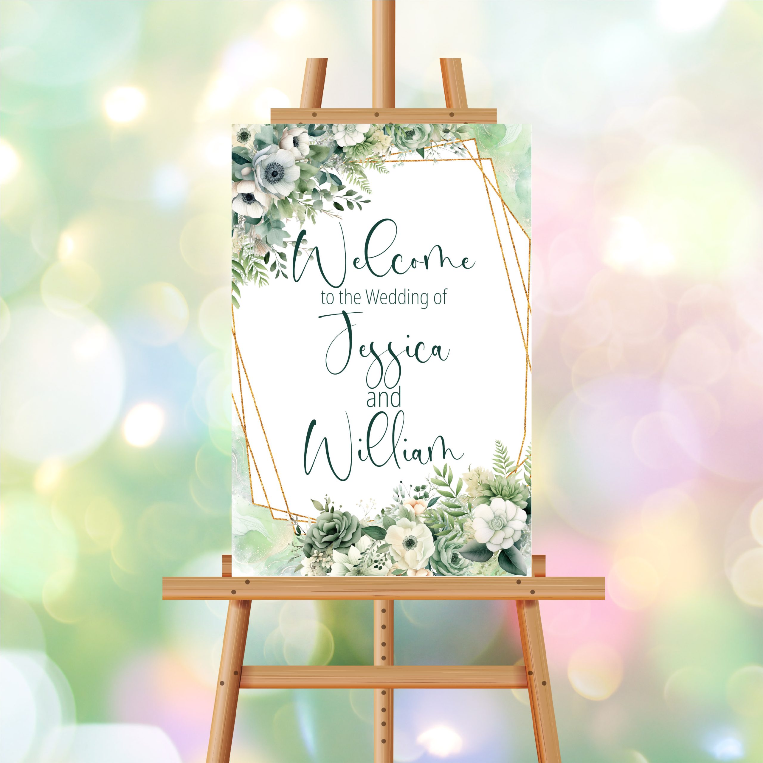 Welcome Sign Soft Green Geo