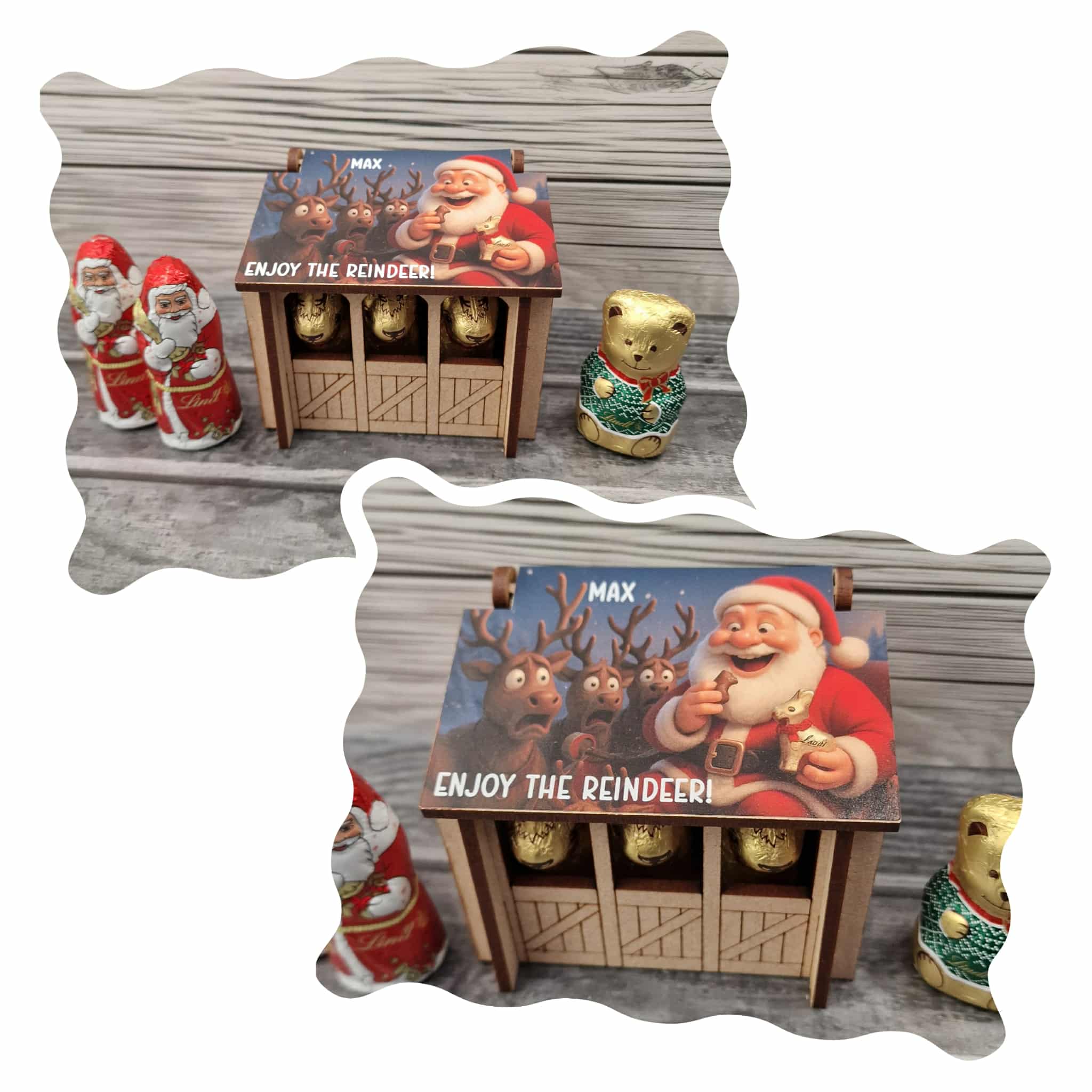MINI Stable (3 reindeer) vinyl – Santa with scared reindeer